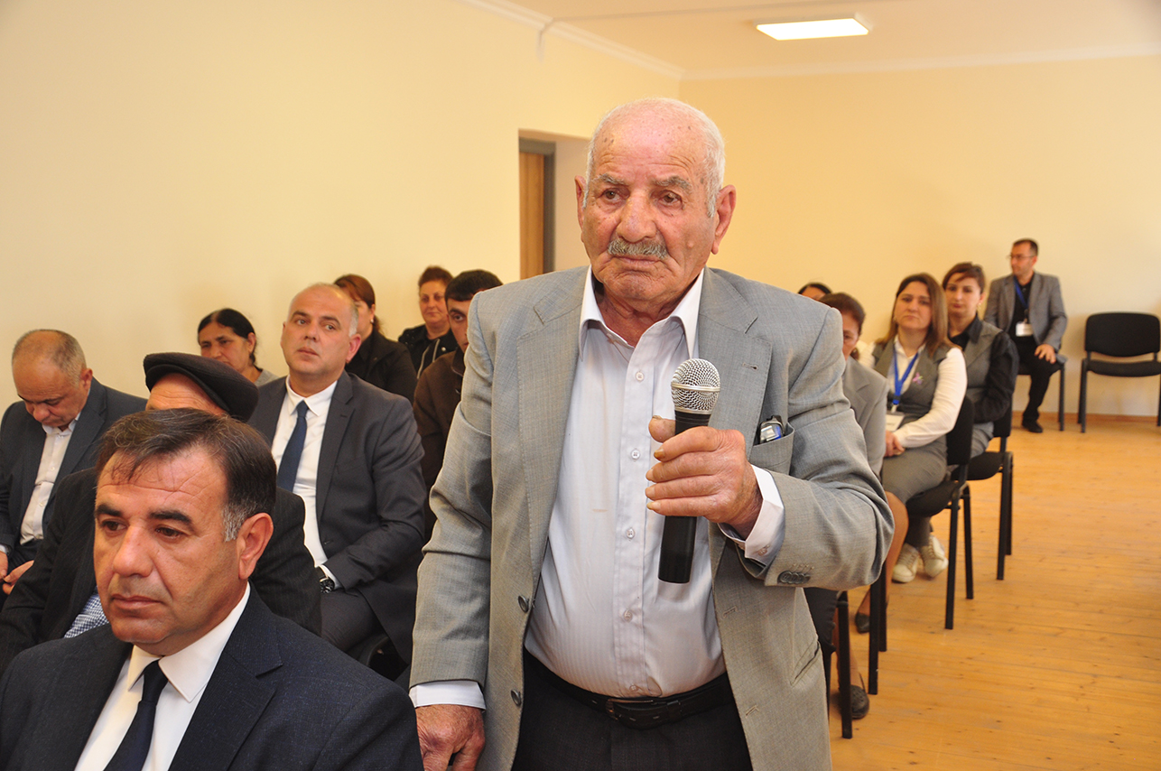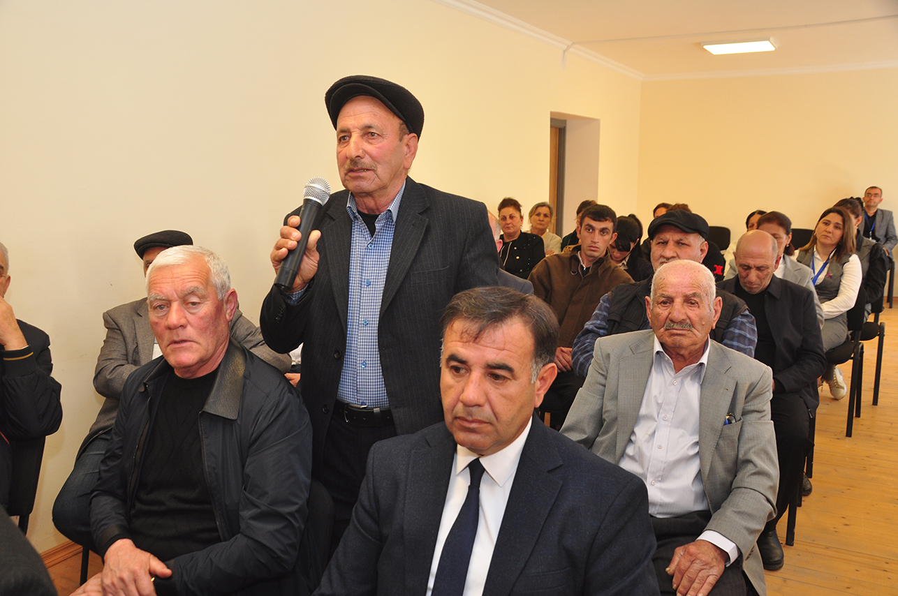 Səyyar görüş-qəbulda çıxış edən şəhid ataları Fuad Abbasov, Əjdər Həşimov və başqaları kəndlərinin mövcud problemlərindən danışmışlar.